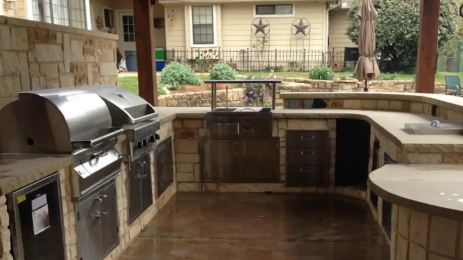 Built-in cooking and prep zones designed for daily use and weekend gatherings.